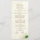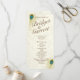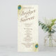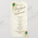 Elegant golden peacock feather design printed rack card wedding programs with brown text.
