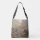 Let yourself be transported to an ethereal Japanese landscape with this elegant cross-body bag. The design features golden mountain peaks rising above misty clouds, ancient pine trees, and a winding river that leads the eye towards serenity. With soft sepia tones and a glowing horizon, this bag evokes harmony, balance, and the timeless beauty of nature. Ideal for art lovers, travelers, and anyone who appreciates poetic, contemplative style.