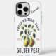 Two ripe golden pears hang from a lush green branch, symbolising abundance and nature's bounty. The artisanal design showcases the freshness of a natural farm, inviting viewers to appreciate the charm of homegrown produce since 1983.