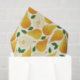 A pattern of vibrant golden-brown pears in shades of yellow, orange and gold, with deep green leaves. Some of the pears are halved to show the juicy insides and seeds. This pattern is clean and modern, using simplistic fruit illustrations paired with watercolour textures and a limited colour palette.