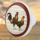 Golden Penciled Hamburg Roosters Maroon Farmhouse Ceramic Knob