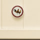 This heritage rooster poultry cabinet knob features two golden penciled hamburgs - or hamburghs - are set aganst a weathered offwhte wood background. The combs and tail feathers show off beautiful plumage. These beautiful farmhouse inspired cabinet knobs would look great on kitchen cabinets, livingroom, dining room, or bedroom decor, perhaps on a refurbished armoir. The design is surrounded by a maroon -- very dark red -- border. This vintage artwork is public domain work from the 1921 Book of poultry, and is made available via the Biodiversity Heritage Library on the Flickr Commons.