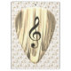 This elegant design combines musical aesthetics with a luxurious gold marbled look. The focus is on a classy guitar pick with a curved treble clef graphic, surrounded by a harmonious pattern of gold notes on a warm brown background. Perfect for music lovers, guitarists and anyone looking for a stylish tribute to music. Ideal for personalized gifts, accessories or decorations with a musical flair.