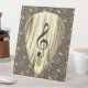 This elegant design combines musical aesthetics with a luxurious gold marbled look. The focus is on a classy guitar pick with a curved treble clef graphic, surrounded by a harmonious pattern of gold notes on a warm brown background. Perfect for music lovers, guitarists and anyone looking for a stylish tribute to music. Ideal for personalised gifts, accessories or decorations with a musical flair.