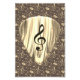 This elegant design combines musical aesthetics with a luxurious gold marbled look. The focus is on a classy guitar pick with a curved treble clef graphic, surrounded by a harmonious pattern of gold notes on a warm brown background. Perfect for music lovers, guitarists and anyone looking for a stylish tribute to music. Ideal for personalised gifts, accessories or decorations with a musical flair.