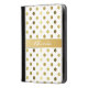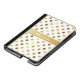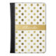 Chic Kindle Fire HD/HDX Folio Case done in gold tone and white polka dot pattern. Graphics of a gold tone ribbon, across the centre, has white script text ready to personalise, for yourself or as a great gift idea.