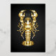 Golden, shiny, lobster drawn in polygonal, geometric style on black background. Gold lobster.