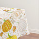 A charming, hand-drawn style tablecloth featuring a beautiful pattern of pumpkins and scattered autumn leaves in warm shades of gold, orange, and grey. Perfect for bringing a cosy, rustic feel to your Thanksgiving dinner or any fall gathering.
