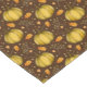 A festive pattern of golden pumpkins, orange leaves and hearts, and fall berries on a brown background.