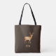 Beautiful golden reindeer silhouette on dark brown Tote Bag.