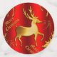 This very festive Christmas table confetti features a pattern of golden reindeer, with little golden sprays of snow on a colourful, metallic-look red gradient background.