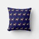Golden reindeer silhouette pattern on navy blue Throw Pillow.