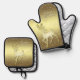 Beautiful Golden Reindeer Snowy Oven Mitt & Pot Holder Set