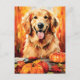 A Colourful autumn and thanksgiving portrait of a Golden Retriever.
