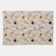 Cute Golden Retriever dogs with dark and light coats sit and stand with scattered dog bones and pawprints on a gray background.