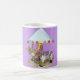 This coffee mug features golden retriever dressed as carousel horses on a carousel.