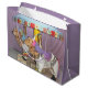 This gift bag features golden retrievers dressed as carousel horses on a carousel.