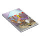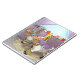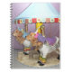 This notebook features golden retrievers dressed as carousel horses on a carousel.
