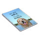 This notebook features a photograph of a smiling golden retriever dog surrounded by blue skies and water. The quote reads, "Let your smile change the world."