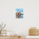 This poster features a photograph of a smiling golden retriever dog surrounded by blue skies and water. The quote reads, "Let your smile change the world."