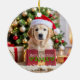 Golden retriever Christmas celebration. Oh so cute, Golden Retriever puppy emerging from a Christmas present. Merry Christmas.