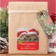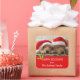 These stickers feature a photograph of a golden retriever dog and puppy, asleep on a rug while wearing Santa hats. Add your name and custom message!