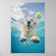 Golden Retriever Diving Tennis Ball Underwater Poster