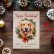Celebrate the season with this exquisitely painted Custom Golden Retriever Dog Breed Christmas Card, made just for you! This beautifully detailed card captures the charm of the Golden Retriever breed and can be personalised with your pet and family name in green at the bottom. "Happy Pawlidays/Happy Howlidays" and "Merry Christmas 20XX" can also be customised if you prefer a different holiday greeting. Share the love, spread the joy, and make this holiday unforgettable. Order yours now and make your greeting cards as special as your family! 🎅🐶🎁