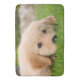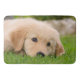 A Golden Retriever puppy resting and chilling in a meadow, such a cutie puppy-eyed Goldie with a pensive face. This large soft bath mat is an enchanting gift idea for dog lovers. A young dreaming doggy portrait photo taken by Katho Menden.