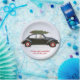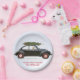 Golden retriever dog driving old car with tree paper plate
