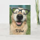 Send that special dad in your life a cute card on his big day! Design features a photograph of a smiling golden retriever dog in the park who's wearing black nerd glasses. Text on front reads, "To Dad," while inside text states, "Happy Father's day to a guy like no one else!" Both are customisable to fit your needs.