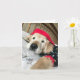 Cheer up an ill friend or relative with this cute greeting card! Design features a photograph of a sad golden retriever dog who is is wearing pyjamas in bed. . Customisable text reads, "Feeling sick? Get well soon."