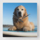 Golden Retriever Dog Laying On A Paddle Board Square Wall Clock