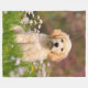 Golden Retriever puppy in a meadow of Cuckoo Flower. He is such a cutie Goldie, I had a lot of fun taking pictures of him. This soft cosy fleece blanket is a gift idea for dog lovers. The puppy-eyed doggy was photographed by Katho Menden http://www.zazzle.com/kathom_photo