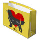 Send along a little bit of golden cheer with this cute gift bag! Design features a black silhouette of a golden retriever dog against a red heart, with the text, "Love is Golden." Customise with the name of your special dog or dogs.