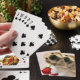 These playing cards feature a photograph of a cute golden retriever dog who is holding a red rose in his mouth.