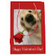 A special Valentine's day gift bag for someone you love! Design features a photograph of a golden retriever dog who is holding a red rose in his mouth.