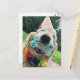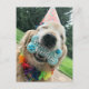 Send special birthday greetings with this cute card! Design features a photograph of a happy golden retriever dog who is wearing a party hat and holding a "happy birthday" bone-shaped cookie in his mouth. Customisable text on back reads, "Hope it's a good one!"