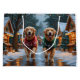 This festive design captures the joyful spirit of the holiday season, featuring an adorable dogs.Nestled in a winter wonderland, complete with a decorated Christmas tree, and beautifully wrapped presents. Snowflakes gently fall, adding a magical touch to the scene, while the vibrant colours of the holiday decorations create a warm and cheerful atmosphere.