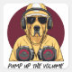 A golden retriever dressed as a DJ in sunglasses and headphones, ready to spin the latest hits on his speakers.