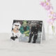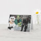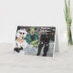 This Halloween card features a golden retriever dressed as Dr. Frankenstein, the mad scientist. He is in his lab assembling the head and body of the other golden retriever who is dressed as Frankenstein’s Monster. The text reads, “Frankly, my dear...” and “I hope your Halloween is truly ELECTRIFYING!!!”.