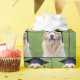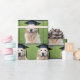 Golden retriever dog wearing a black graduation cap with tassel with green grass background