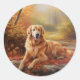 Golden Retriever in Autumn Leaves Fall Inspire Classic Round Sticker