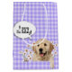 Golden Retriever in daisies on purple gingham Medium Gift Bag