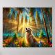 A beautiful Golden Retriever in a vibrant enchanted forest.