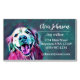 Make your dog walking profession stand out with these neon coloured magnetic business cards! Design features an art portrait of a smiling golden retriever dog, who is rendered in shades of hot pink and teal. Customise the text with all your personal information. If you need help, feel free to send a message!
