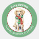 Golden Retriever in Red and Green Christmas Scarf Classic Round Sticker