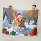 Golden Retriever in Snow with Christmas Hat Fleece Blanket