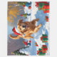 A cheerful Golden Retriever runs through the snowy winter scene, wearing a festive red Christmas hat. This joyful design captures the breed’s friendly nature, loyalty, and playful spirit while celebrating the warmth and magic of the holiday season. A heartwarming winter moment full of festive charm.