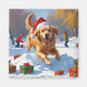 Golden Retriever in Snow with Christmas Hat Magnet